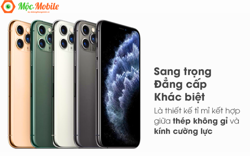 iPhone 11 Pro cũ nguyên bản được thiết kế từ chất liệu kính và thép không gỉ, mang đến một cảm giác cầm nắm chắc chắn và sang trọng. Mặc dù là sản phẩm cũ, chiếc iPhone 11 Pro tại Mộc Mobile vẫn giữ được vẻ đẹp gần như mới, với mặt lưng kính mờ đặc trưng và khung thép không gỉ sáng bóng. Cảm giác cầm chắc tay cùng thiết kế bo tròn mềm mại tạo nên sự thoải mái trong việc sử dụng hàng ngày.