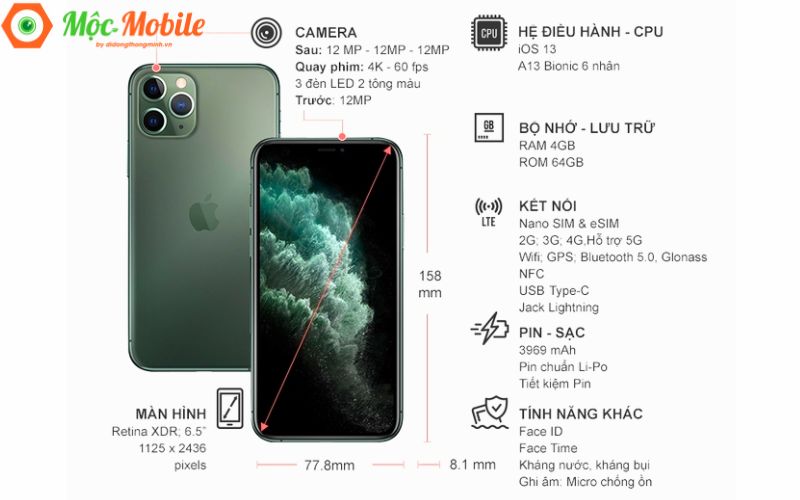 Được thiết kế với màn hình OLED Super Retina XDR 6.5 inch và khung thép không gỉ, iPhone 11 Pro Max mang lại một vẻ ngoài sang trọng và vô cùng bền bỉ. Chắc chắn bạn sẽ cảm thấy tự hào khi sở hữu một chiếc điện thoại có thiết kế đẳng cấp này. Dù là iPhone cũ, nhưng với việc kiểm tra và bảo dưỡng nghiêm ngặt tại Mộc Mobile, bạn sẽ nhận được sản phẩm với ngoại hình gần như mới, không bị trầy xước hay hỏng hóc.
